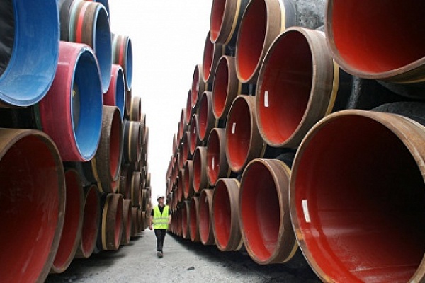 На фабрике к Рюгене трубы, изготовленные в Германии, обетонируют и они будут готовы к укладке на дно Балтийского моря.